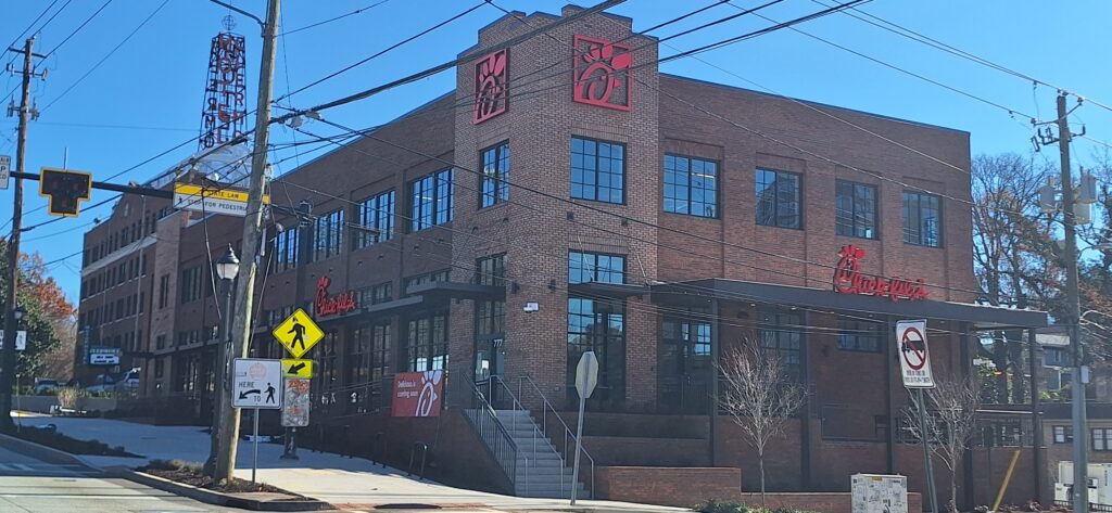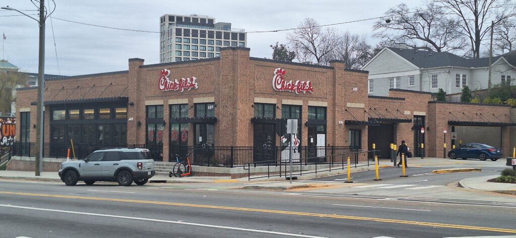 You might wonder, wouldn’t it be simpler to have one large Chick-fil-A instead of two? But that’s just not Atlanta’s style—why settle for one when “two of everything” seems to work perfectly here? In this rapidly redeveloping and increasingly popular neighborhood, with traffic as intense as ever, those three short blocks between locations can sometimes feel more like three miles.